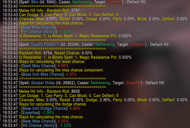 To address some concerns in PvP regarding resists and misses that have been continuously put forward since the first iteration of Netherwing, we implemented a system that displays all variables included in the spell hit calculations so every player can see for themselves what the hit/miss chances were and what contributed towards them. This facilitates both potential bug searching as well as providing transparency and clearing doubts for anyone who was adamant that something had to be wrong. So far since this system was added we haven’t had a single case of anyone spotting any inconsistencies or issues and all the math seems to check out, which leads us to believe it’s never been us that had a poor implementation of resistances but perhaps other servers which players seemed to revere purely because the lack of proper mechanics resulted in fewer resists and other inconveniences…